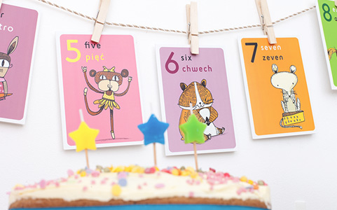 Would you like to say ‘Feliz cumpleaños!’ or maybe ‘Bon anniversaire!’? Say ‘Happy Birthday’ in English and another language for ages 1 - 10. Each year has two different bright animal designs to choose from. Please scroll down to see and buy all 20 designs.