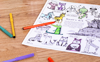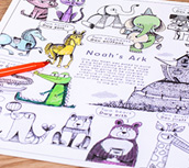 There are lots of animals on their way to the ark; cats, horses, lions, crocodiles and many more! Can you find them all and colour them in? This poster is available in A2 and A3 sizes.