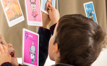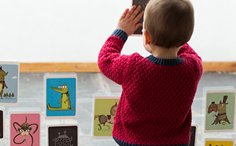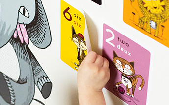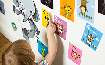 Easy Tack is a new material that can be stuck on any smooth surface, repositioned and moved without losing its stick. It does not mark and is easy for little hands to use and move. All our flash cards and other games will soon be available for pre-order in the wonderful new material.