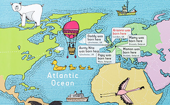 What would you like to share about a map of the world with the children in your life? Perhaps where family members were born, or where friends are from, where you have travelled or where you would like to go? Add messages and locations to special arrows and let us know how many, where they should point and what you would like them to say.