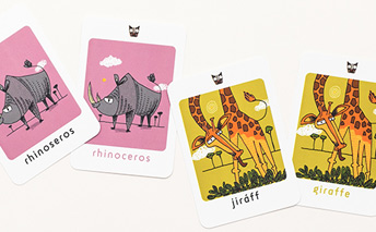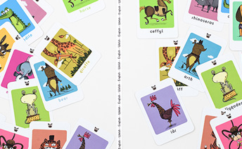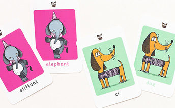 A set of 30 beautiful dual language animal snap and pairs cards. Play any number of games; matching, snap, memory, colour, hide and seek... at home or on the move. Please have a look at our games guide for more ideas. These handy cards come in A7 size and are specially coated for strength. They aren't however edible and don't enjoy swimming so please avoid trips into the sink or bath etc.
