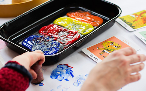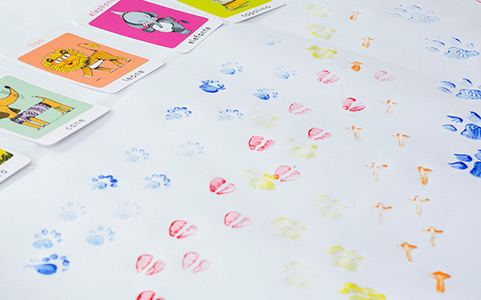 What kind of tracks does a chicken make? What kind of foot prints does a bear make? You could invent these and draw them, make potato cuts or use ready made stamps. Be careful they don’t end up across the floor too…!