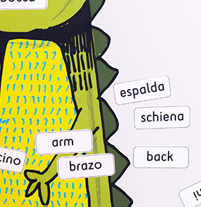 We are always busy designing and testing new products. Pictured here is ‘crocobody’ a big, friendly crocodile wall sticker with labels in as many languages as you would like to show different parts of his body. The labels are made from the magic ‘Easy Tack’ material and can be stuck, moved and re-stuck multiple times without marking or losing their stick.