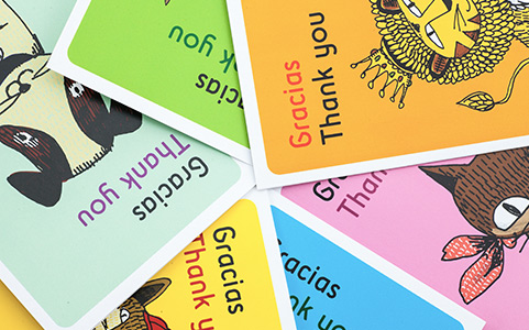 So many of us either speak several languages at home, or have several in the family or have friends who do. It can be hard to find greetings cards with two different languages so we have designed a selection for birthdays, to say thank you and for new babies. More will be arriving soon and we’d love to hear from you if you would like to see different languages or language combinations. Please get in touch with us here.