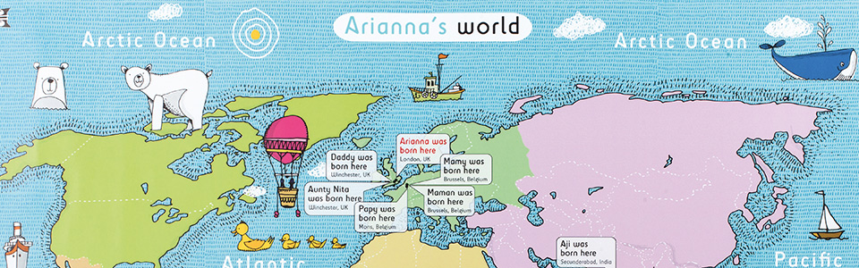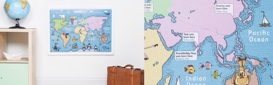 What would you like to share about a map of the world with the children in your life? Perhaps where family members were born, or where friends are from, where you have travelled or where you would like to go? Add messages and locations to special arrows and let us know how many, where they should point and what you would like them to say.