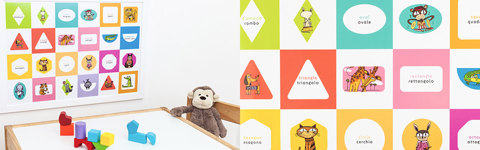How many different objects can you find around the house to match the shapes on this poster? These colourful shapes each have a lil’ollo character sitting inside them - perfect for drawing games. This fun poster comes in A1 or A2 sizes.