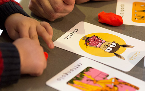 How about playing a game where you find objects together that match the shapes on cards or poster?